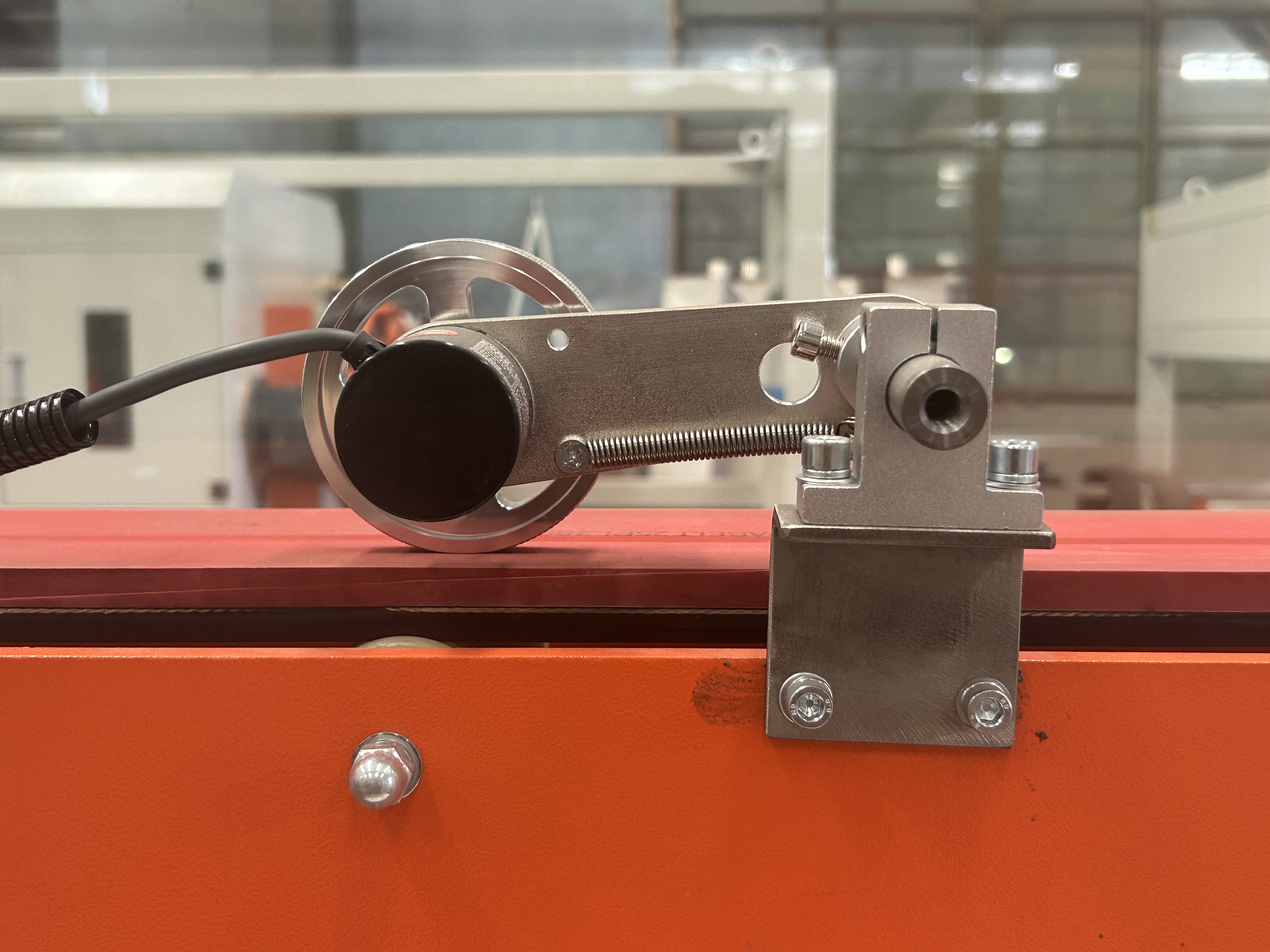 เครื่อง ดึง ผลิตภัณฑ์ ด้วย ความ เร็ว ที่ เสมอ แล้ว เครื่อง ตัด อัตโนมัติ ก็ ตัด ผลิตภัณฑ์ ให้ มี ความ ยาว ที่ จําเป็น