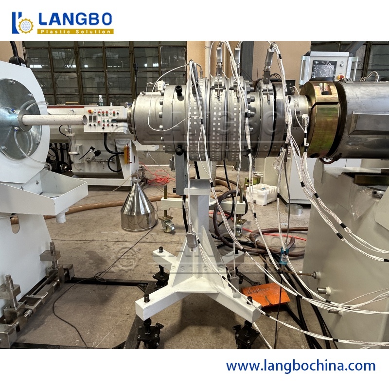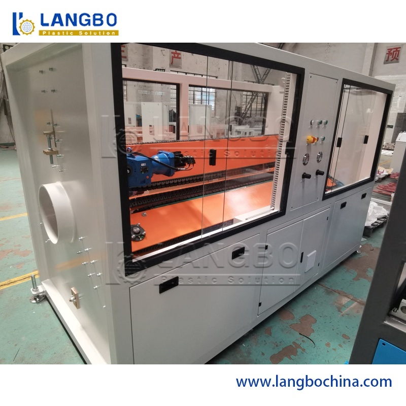 วัตถุดิบ + สารเติมแต่ง → การผสม → การลำเลียงวัสดุ → การให้อาหารแบบบังคับ → เครื่องอัดรีดสกรูคู่ทรงกรวย → แม่พิมพ์อัดรีด → หน่วยควบคุมเส้นผ่านศูนย์กลาง → การพ่นกล่องสร้างรูปร่างสูญญากาศ → ถังเก็บน้ำหล่อเย็นแบบพ่น / แช่ → เครื่องทำเครื่องหมาย → รถแทรคเตอร์ตีนตะขาบ → เครื่องตัด → เครื่องขยายท่อ → รถยกท่อ → การตรวจสอบและบรรจุท่อ