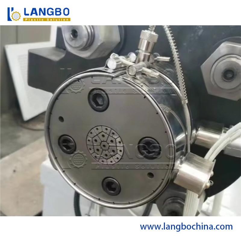 กระแสกระบวนการของสายนี้คือผง PVC + สารสกัด - วัสดุผสม - เครื่องเลี้ยง - เครื่องบดสกรูคู่ - หม้อและเครื่องปรับขนาด - หม้อสร้างกระเป๋าสะอาด - เครื่องตัด - เครื่องตัด - เครื่องปล่อย