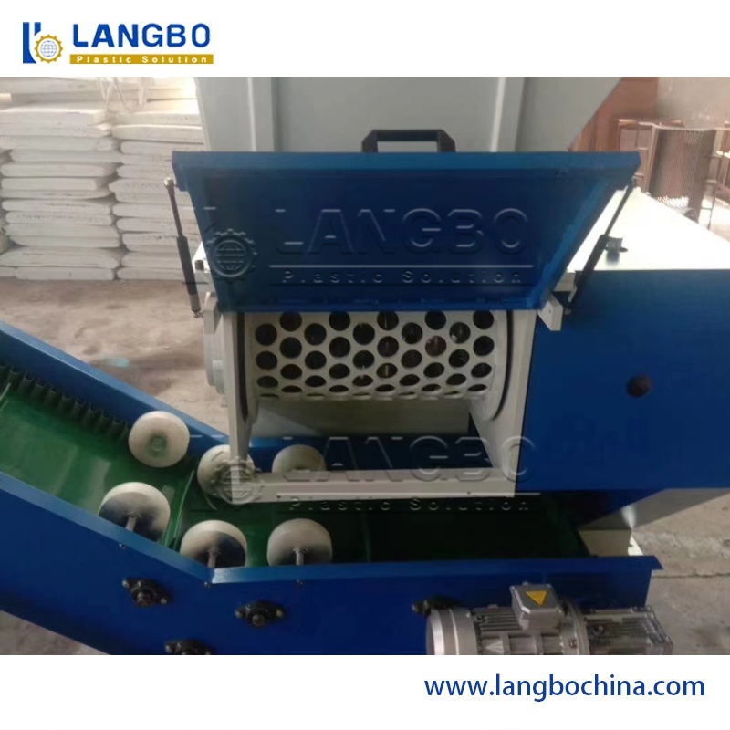 ก่อนที่สายการอัดขึ้นรูปท่อ HDPE จะทำงานได้อย่างราบรื่นเพื่ออัดขึ้นรูปท่อ คนงานจำเป็นต้องสตาร์ทเครื่องและปรับรายละเอียดทุกอย่างในระหว่างกระบวนการทั้งหมด ในกระบวนการนี้ จะมีก้อนหลอม PE ที่เสียจำนวนมาก เป็นก้อนใหญ่และแข็งพอสมควร ดังนั้นจึงไม่สามารถจัดการกับเครื่องบดได้ สามารถประมวลผลได้ด้วยเครื่องบดเท่านั้น เครื่องบดเพลาเดี่ยวของเรามีความเร็วในการหมุนสูงและมีมีดรูปร่าง คนงานใส่ก้อนหลอมที่เสียผ่านช่องและอนุภาคจะตกลงมาจากทางออก