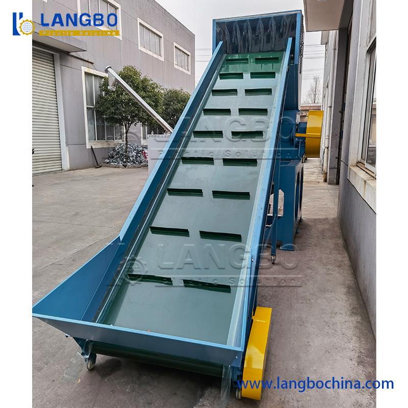 ตัวอย่างเช่น เครื่องบดสำหรับฟิล์ม PE/PP โครงสร้างใบมีดของเครื่องบดเป็นรูปตัว V ถังล้างแบบลอยมีลูกกลิ้ง 5 ตัวอยู่ด้านบน ลูกกลิ้งตัวสุดท้ายควบคุมโดยอินเวอร์เตอร์ พลาสติกแข็งจะถูกระบายออกที่ด้านล่าง เครื่องซักผ้าแบบเสียดสีจะทำการล้างวัสดุก่อนและนำน้ำสกปรกออก ฯลฯ มี 1200RPM เครื่องกำจัดน้ำออกจากพลาสติกด้วย 1500RPM หมุนเพื่อนำน้ำสกปรกออก ความชื้นสุดท้าย 5~8%