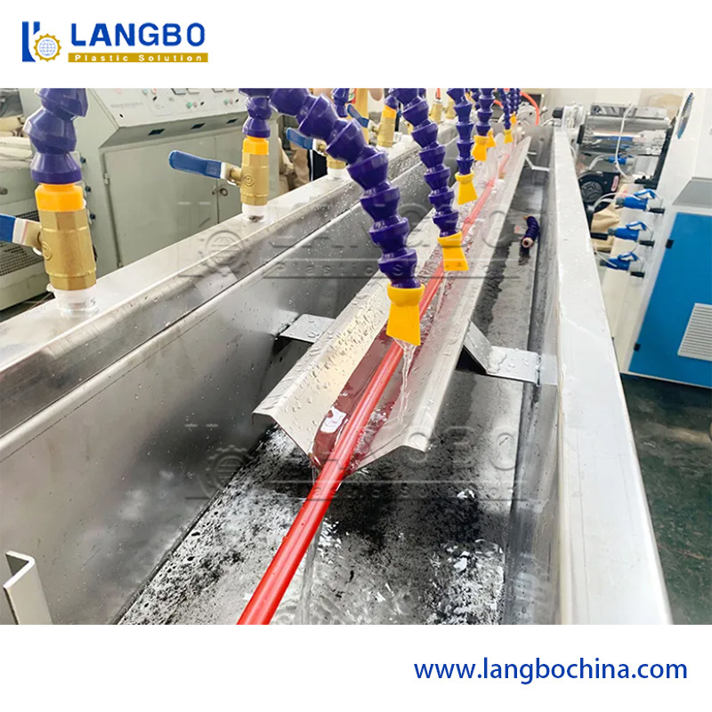 ถังน้ำยาวสี่เมตรช่วยให้ท่อที่ผลิตเย็นลงและขึ้นรูปด้วยการพ่นน้ำเย็น