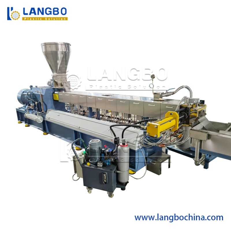 เครื่องอัดรีดพลาสติกแบบสกรูคู่ขนานสำหรับผสมและอัดเม็ด PP PE ABS