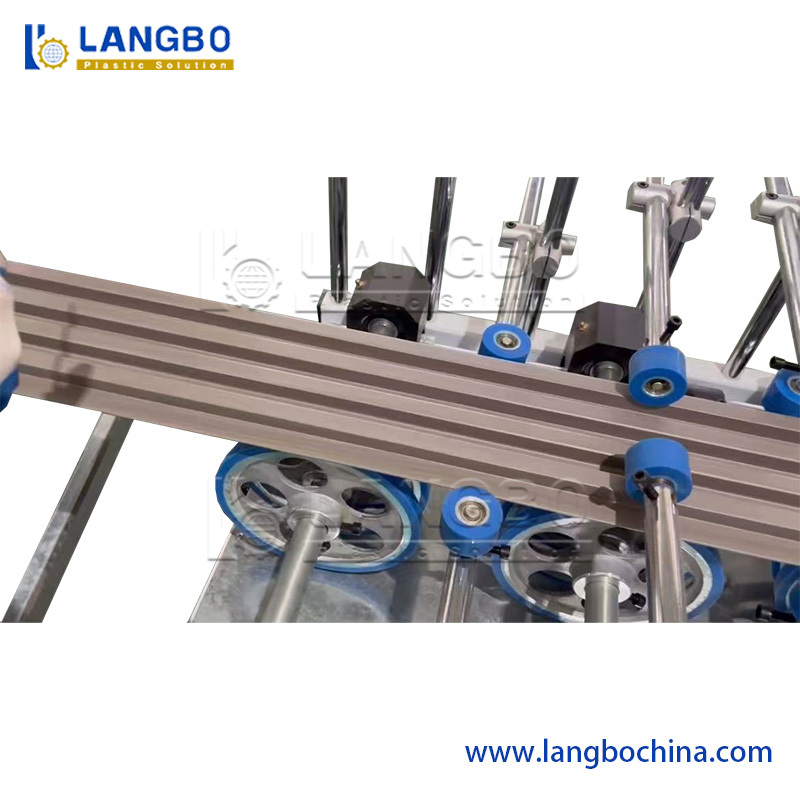 The calibration table has stable steel frame and the whole body material is SUS 304 stainless steel. We have multi-dimension position adjustment system. With precious layout of water pumps and vacuum calibrator, the PVC profile will be rapidly shaping and cooling. Enough length of the calibration table ensures the shaping of the PVC profile