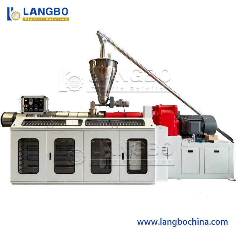 Loader→Conical double-screw extruder→Mould→Vacuum forming water tank→Spraying cooling tank→เครื่องถอนออก→เครื่องสะสมถอนกลับ